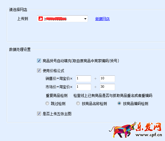 6.網店配置完成后,設置好數據,銷售價和市場價都可以根據價格公式設置,檢測重復商品可以避免大批量上貨的時候重復上貨。