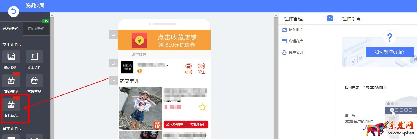 手機端的可以鉆展創意可以鏈接到淘積木落地頁。淘積木落地頁添加“有禮玩法”,能夠在買家添加購物車,自動向買家發送優惠券,對于引導加購作用很大。
