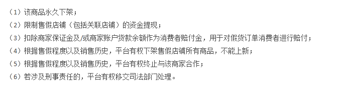 平臺在發現疑似假貨的當天(T日),將采取下列一項或者多項措施: