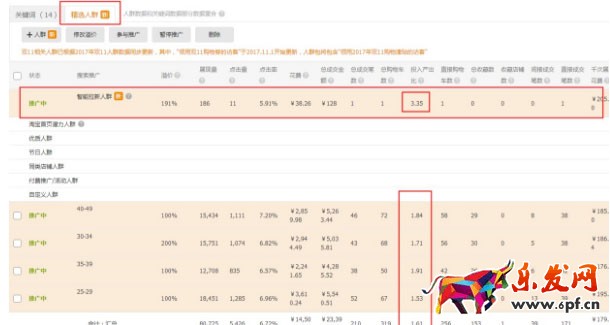 查看計劃的人群,查看多天數(shù)據(jù),找到投入產(chǎn)出比最高的人群,并將這部分人群高溢價,其他低產(chǎn)出人群如果數(shù)據(jù)量小可以直接暫停或者刪除。