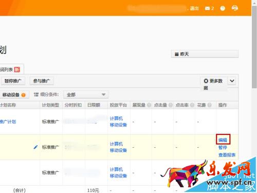 5、在【標準推廣】頁面上會顯示你已經創建的活動,點擊你要設置的活動的編輯。