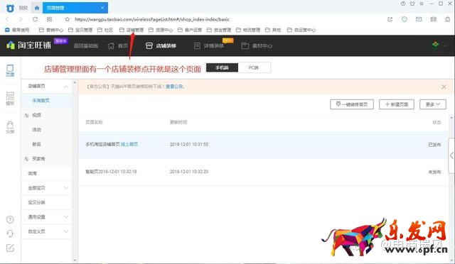 5、上傳圖片完成之后打開店鋪管理----店鋪裝修---手機(jī)端---裝修頁面 如圖所示