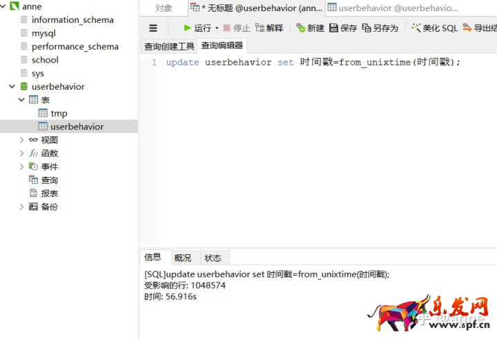 使用Navicat在MySQL數據框中創建表userbehavior,然后將100萬條數據導入表中