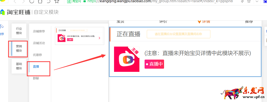 手機淘寶天貓無線端寶貝詳情頁設置直播營銷模塊操作流程,淘寶天貓手機端寶貝詳情頁添加設置直播模塊步驟演示,天貓無線端商品頁會掛一個正在直播的模塊怎么設置?手淘中的寶貝詳情頁是可以添加自定義模塊的,比如優惠券模塊、直播模塊、賣家推薦以及店鋪活動等等,那么該如何添加?在哪里添加呢?有相關疑問的親們進來學習。