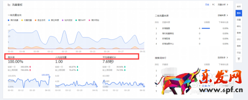 下圖的流量看板肯定是非常重要了,選定時間,可以看到流量的來源。跳失,平均停留時長。同時可以觀察到進店搜索詞,
