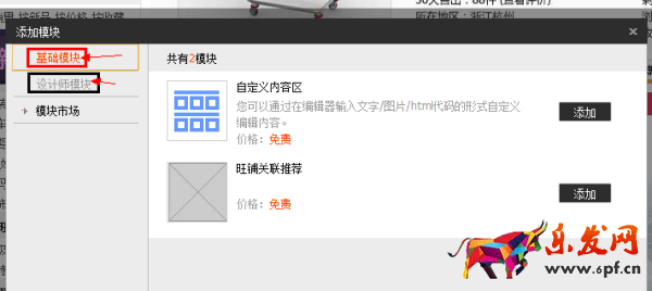 3、添加模塊,“自定義模塊”或者其它模塊。