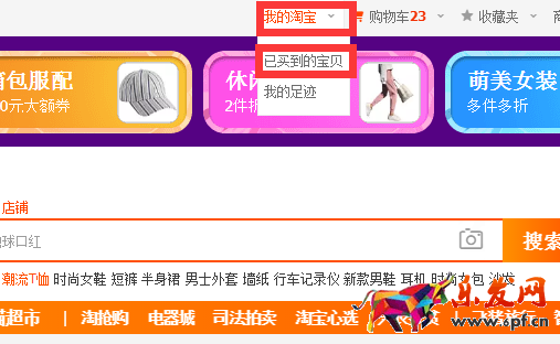 3、然后在界面頂端選擇“已買到的寶貝”,如下圖所示: