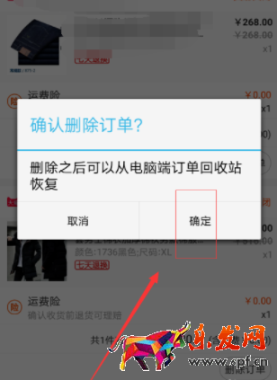 5、之后點擊確定刪除訂單,如下圖所示: