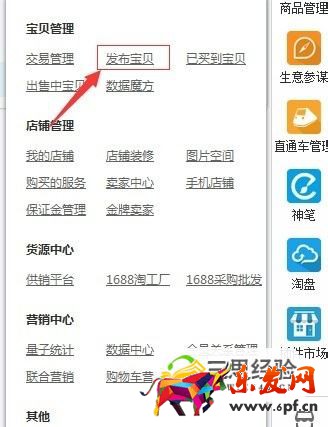 在常用網址中可以看見寶貝管理,點擊寶貝管理下面的發布寶貝。