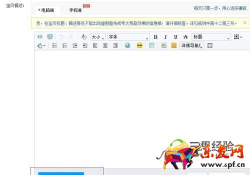 寶貝描述可以直接生產手機版產品信息詳情,不過要注意圖片的尺寸大小。