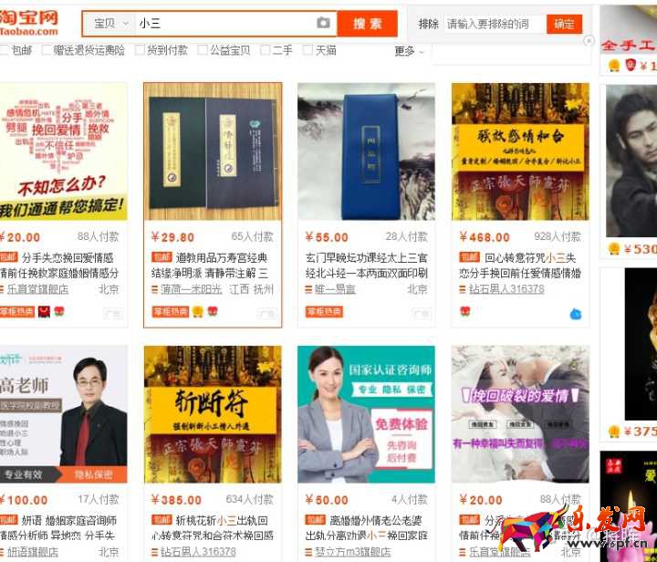 如果你的行業是冷門行業,那么在淘寶上機會是極大的。尤其是這個冷門行業如果在未來的幾年中變成熱門的話,機會將更大。直接看個案例:防小三、讓對象回心轉意。