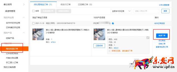 第四步:有訂單后去阿里后臺(tái)下單,供應(yīng)商發(fā)貨