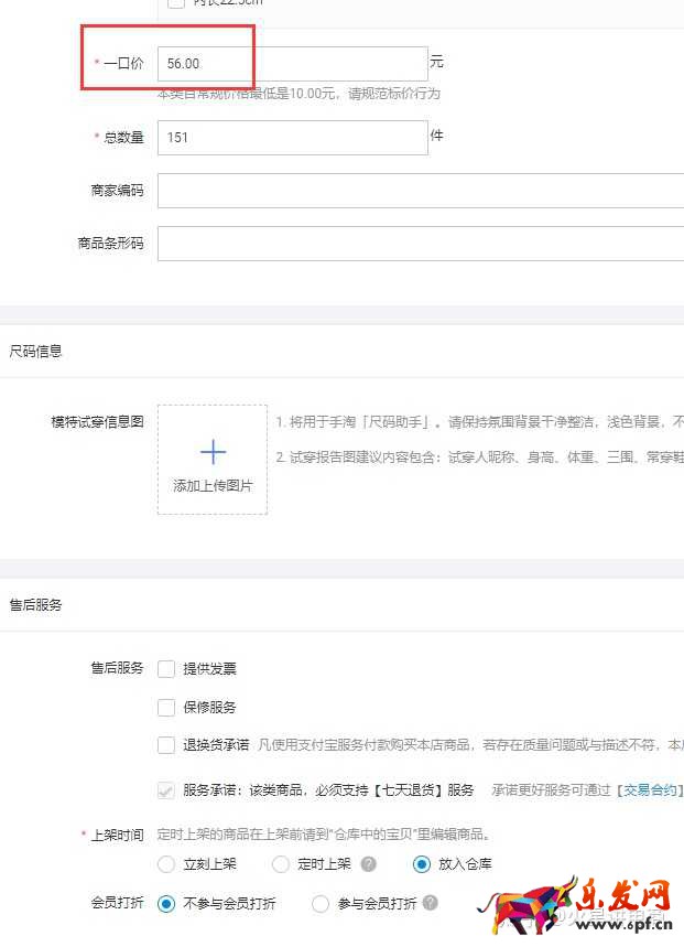 由于供應(yīng)商在1688上架產(chǎn)品的時(shí)候主要是針對(duì)賣(mài)家統(tǒng)一設(shè)置的,你發(fā)布到淘寶的草稿箱之后還需要重新優(yōu)化一下,比如我舉例的這個(gè)產(chǎn)品代銷(xiāo)價(jià)是59元,快遞費(fèi)是5元,我們的代銷(xiāo)成本價(jià)就是64元,但是發(fā)布到淘寶草稿箱默認(rèn)的一口價(jià)是56元包郵,如果我們不改價(jià),直接上架銷(xiāo)售,我們不但不賺錢(qián),還要虧本。