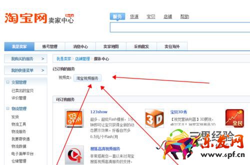 第一步:您得先開能淘寶視頻服務,這個在你的賣家中心>店鋪管理>媒體中心目錄樹中找到淘寶視頻服務,并開通最低服務項目,大約5元2條視頻/月。這個是最基本的開通,因為不開通淘寶視頻服務,您是無法上傳視頻文件的!