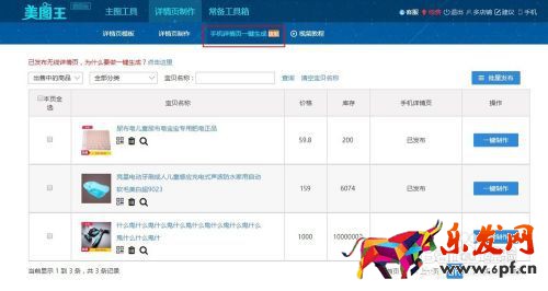 1 進入美圖王--詳情頁制作---手機詳情頁一鍵生成,出現寶貝界面