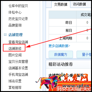 1、進入店鋪中心,店鋪管理找到店鋪裝修,如下圖所示: