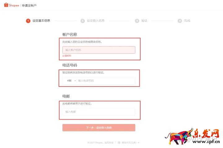 需要賣家提供電話和郵箱用于綁定主賬號,主賬號用于管理新店申請,和之后所有的店鋪運營,同時用于綁定收款賬號。