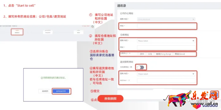 2、填寫所有的地址信息:公司/倉庫/退貨地址