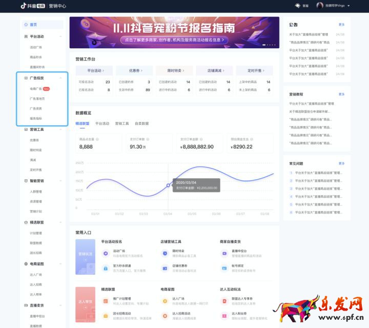 方式一:訪問抖店網,進入抖店商家后臺,首頁頂部導航欄點擊“電商廣告”即可跳轉巨量千川平臺。