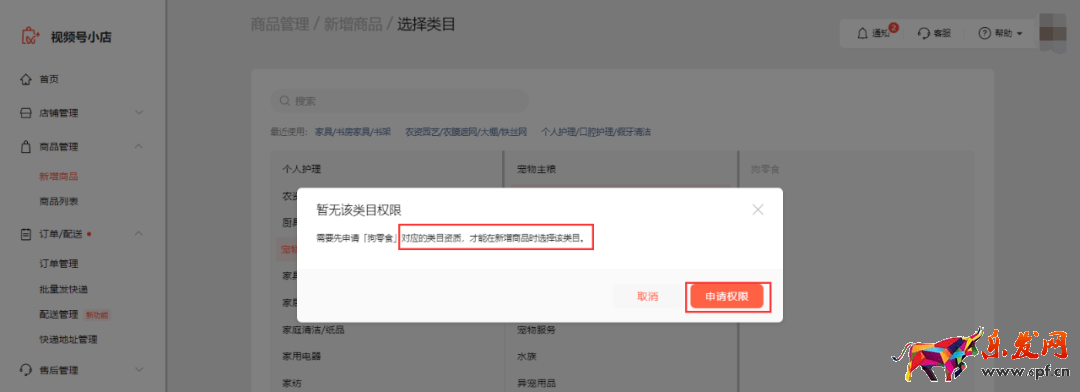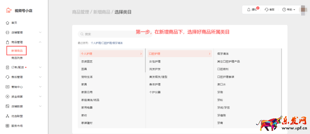 用視頻號管理員微信,進入視頻號小店官網,在后臺的新增商品處去上架商品,首先需要選擇商品所屬的類目,