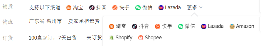 比如說,有人通過這個一件代發的鋪貨到淘寶了,只要他有做關聯這個產品,然后我們在自己1688后臺就可以幫他發貨,而且會訂單回流,自動分賬。當然,這個也包括很多其他的平臺。