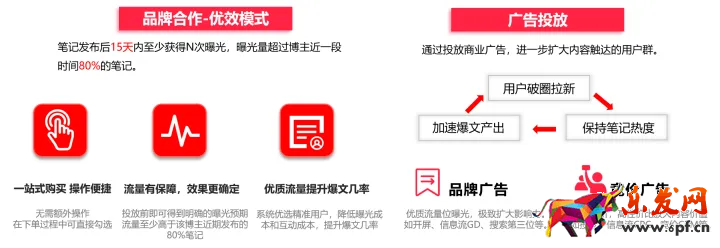 內(nèi)容合作筆記發(fā)布后,可以投放品牌廣告或競價廣告,進一步擴大內(nèi)容觸達的用戶群,延長或放大筆記熱度。