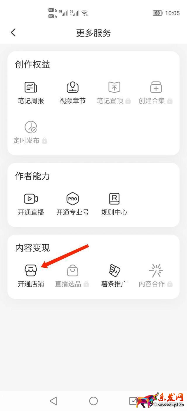 4、找到內(nèi)容變現(xiàn)下的“開通店鋪”