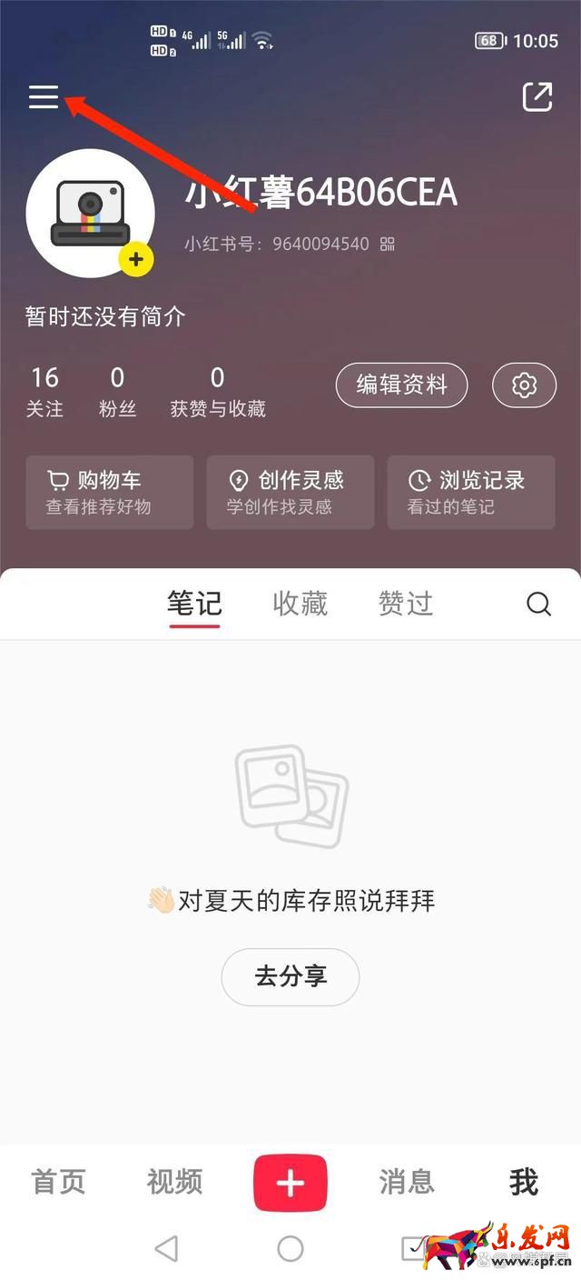 1、進(jìn)入小紅書APP—我—左上角“三”