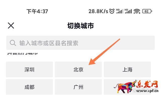 3、在切換成功頁面中選擇想要的城市名字,如果在展示頁沒有,可以通過上方的搜索框找到城市。