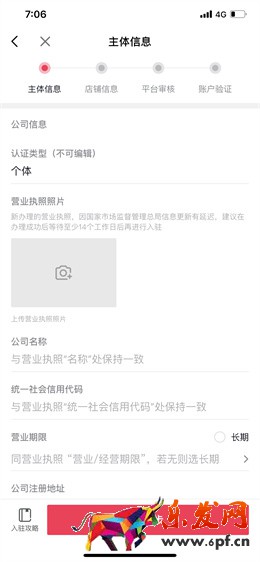 4.填寫用戶信息:填寫個體工商戶的主體信息,就到了抖音小店開店流程認證主體填寫頁面。